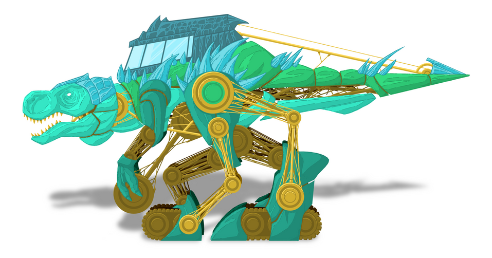 Created as a series, these designs experiment with the idea of combining industrial technology with creatures of the past. The whole project stands as a series of experiments, both in colour and in general design. These images show a more technical side to my designs, whilst helping to further my visual language beyond solid black linework.